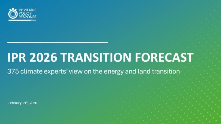 Welcome to the Inevitable Policy Response (IPR), coordinated by Energy Transition Advisors & Theia Finance Labs. IPR was commissioned by the Principles for Responsible Investment (PRI) & is supported by world class research partners, philanthropies, financial institutions and NGOs, to forecast the speed and scale of the transition to net zero. You can find our 2023 Policy Forecast, 2023 Forecast Policy Scenario, 2025 Quarterly Briefing content, blogs and announcements here. Previous IPR content remains available on the PRI website.
